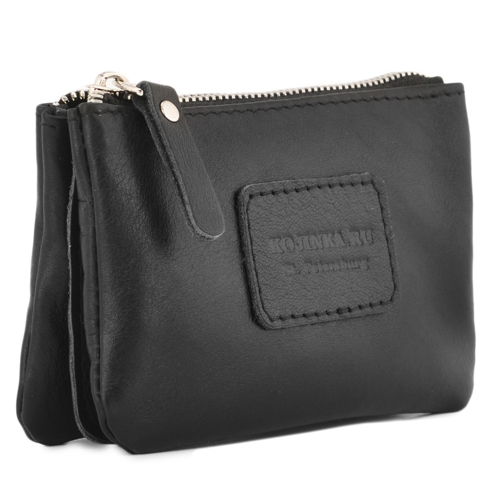 Кожаный кошелек "Солярис" – компактная модель с двумя отделениями для купюр, ключей и небольшим карманом на молнии для хранения мелочи.