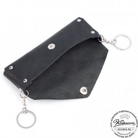 Внутри кольцо для ключей на цепочке, что обеспечивает дополнительное удобство использования. Закрывается ключница на молнию, снаружи есть небольшой карабин.