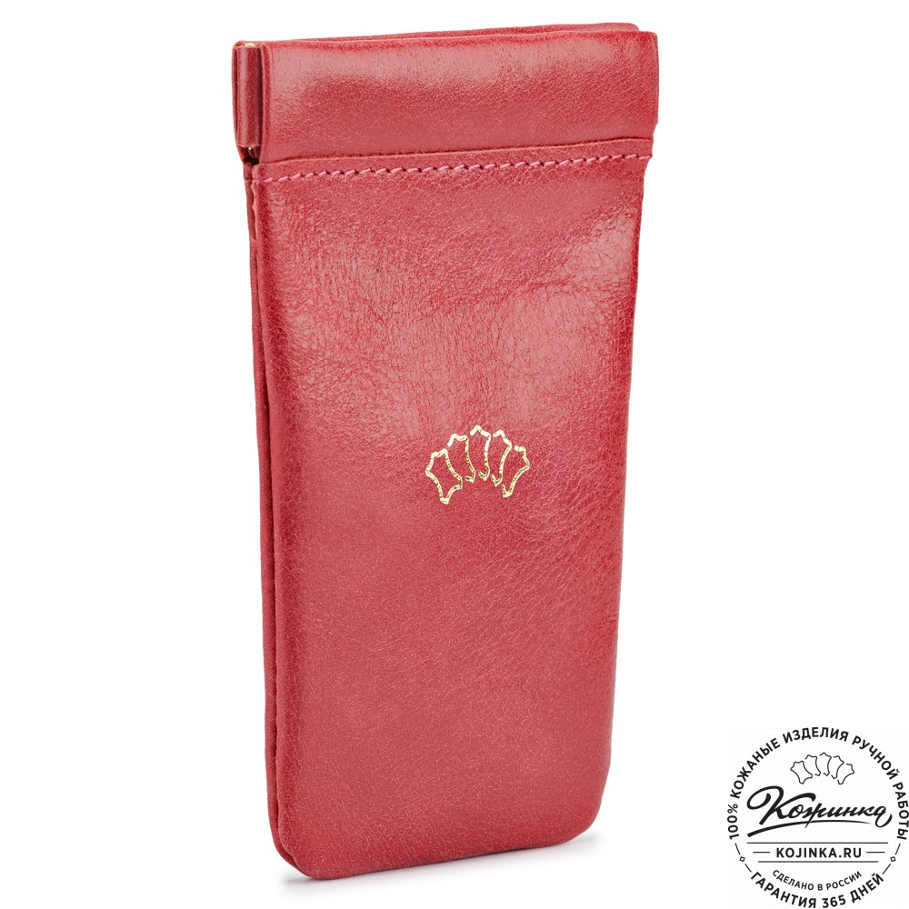 Эта модель представляет собой открытый кожаный чехол с металлическим кольцом на цепочке внутри.