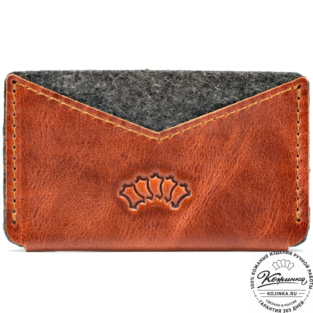 Держатель для пластиковых и банковских карт "Эрик" (рыжий) – компактный кардхолдер из натуральной кожи и войлока.