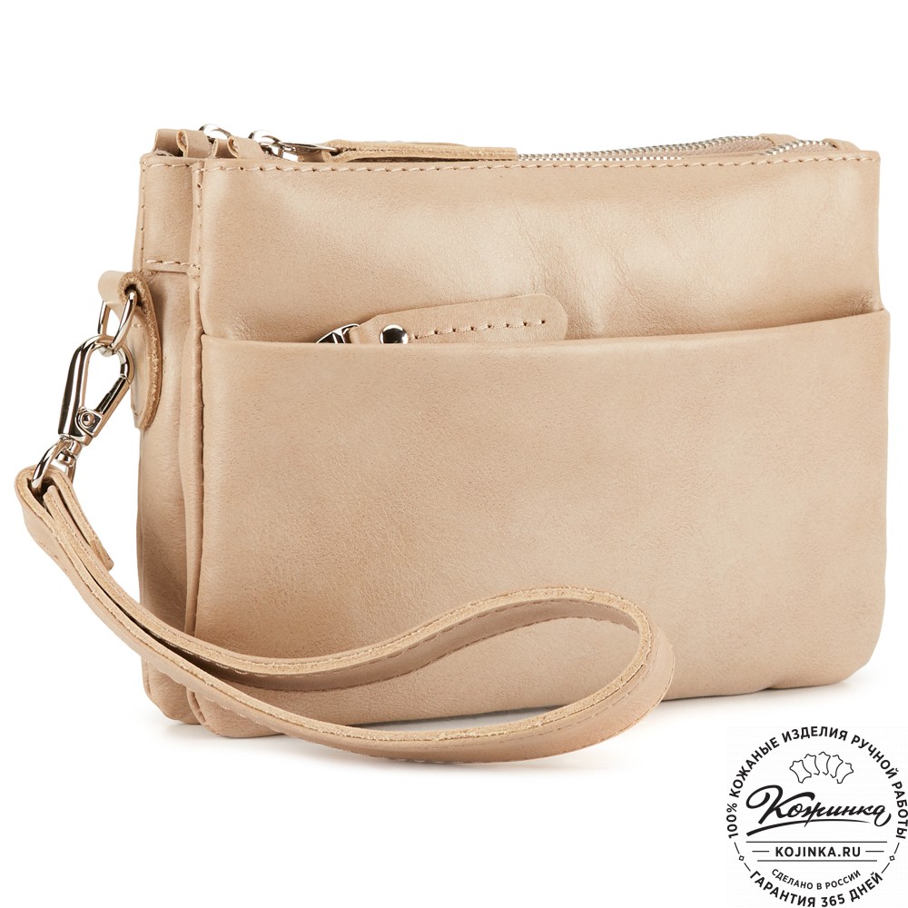 Женская кожаная сумка "Хельга" (бежевая) – маленькая аккуратная сумочка с двумя отделениями.