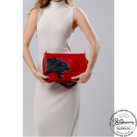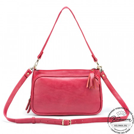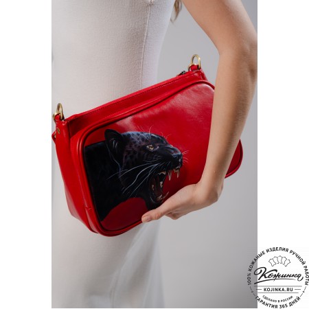 Плечевой ремень кожаный, регулируется по длине ременной пряжкой. Ремешок съемный, крепится по бокам на карабины.