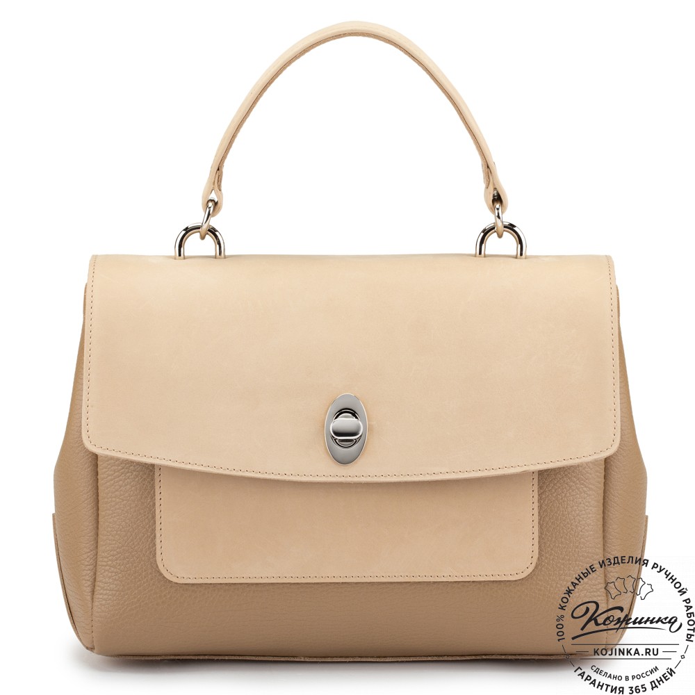 Сумочка средних размеров, выполнена из натуральной кожи двух видов - фактурной и гладкой.