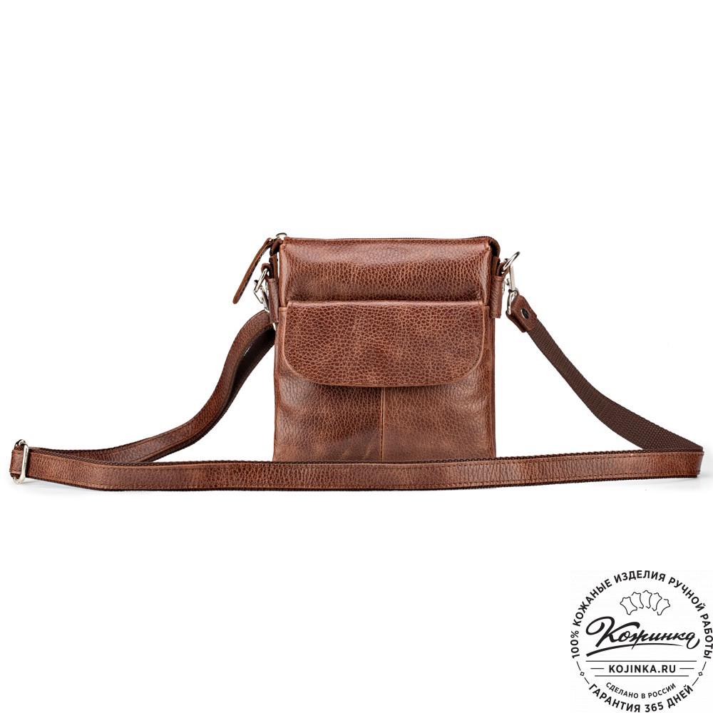 Кожаная сумка "Вуди" (светло-коричневая) - удобная маленькая сумочка из натуральной кожи. В такую сумку поместятся все самые нужные вещи – телефон, документы, кошелек, ключи. Незаменима в путешествии или на прогулке!