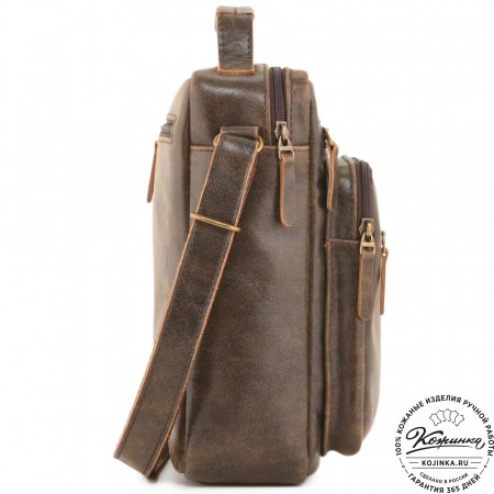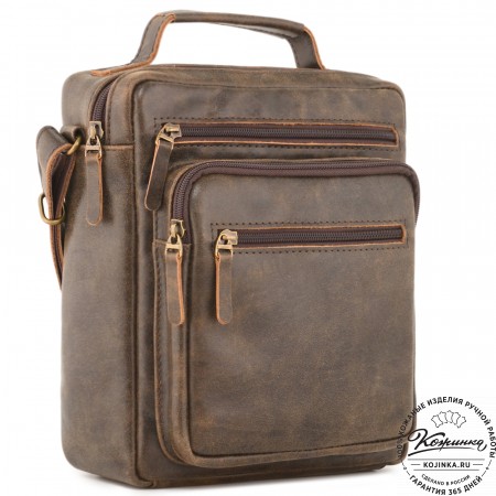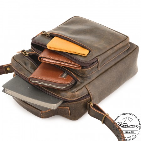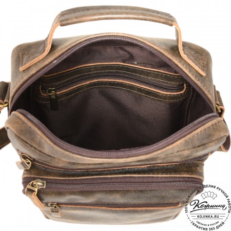 Кожаная сумка "Гектор" – небольшая, но вместительная мужская сумка. Практичная повседневная модель с удобными карманами внутри и снаружи.