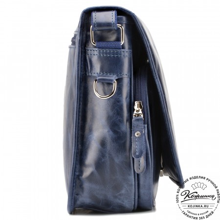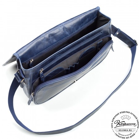 Кожаная сумка "Бавария" (синяя) – практичная повседневная сумка с двумя вместительными отделениями и удобными карманами. В сумку свободно поместится формат А4, папки с документами, журналы, планшет или небольшой ноутбук.