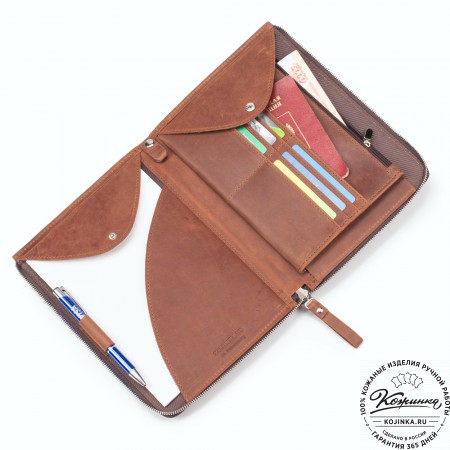 Папка изготовлена из высококачественной натуральной кожи Антик c эффектом Пулл-ап.