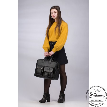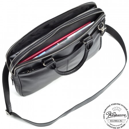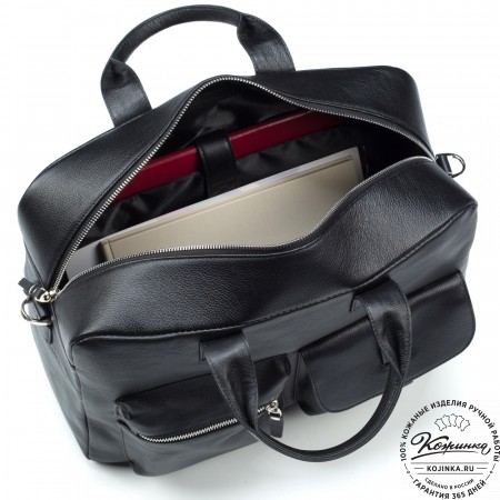 Такая сумка вместит в себя ноутбук, и для него есть специально отведенное отделение, а также большое количество бумаг и документов. Два основных отделения, разделенных перегородкой на молнии, карман для важных вещей и документов на молнии внутри на передней стенке.