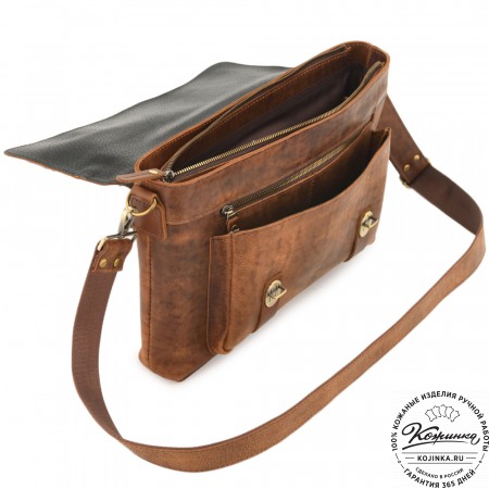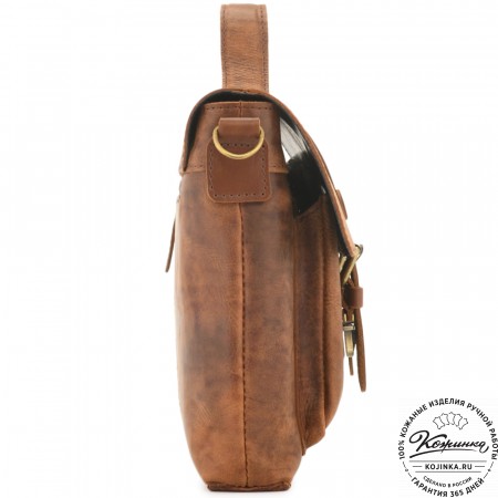 На фото модели представлена сумка "Марк" коричневый крейзи.