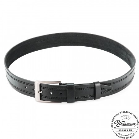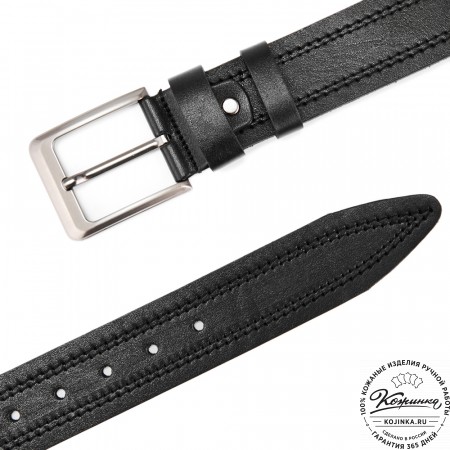 Толстая грубая шорно-седельная кожа высокого качества, удобная пряжка из латуни, лаконичная прошивка по всей длине ремня.