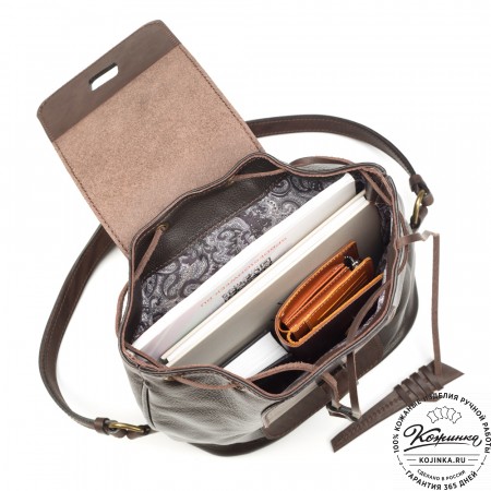 Сверху затягивается на кожаный шнурок как классический кожаный рюкзак. Оригинальный фирменный стиль компании СаШе - узнаваем везде. Непревзойдённое качество исполнения!