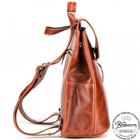 Женский кожаный рюкзак "Гейша" (розовый) - восточные мотивы в мельчайших деталях!