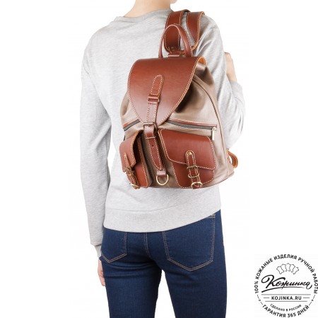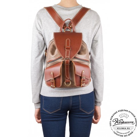На моделях представлены рюкзаки "Гейша" белого и коричневого цветов.