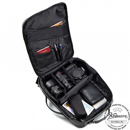 Три наружных кармана для мелких вещей. Внутри одно отделение без подкладки. Удобные кожаные лямки и ручка сверху.