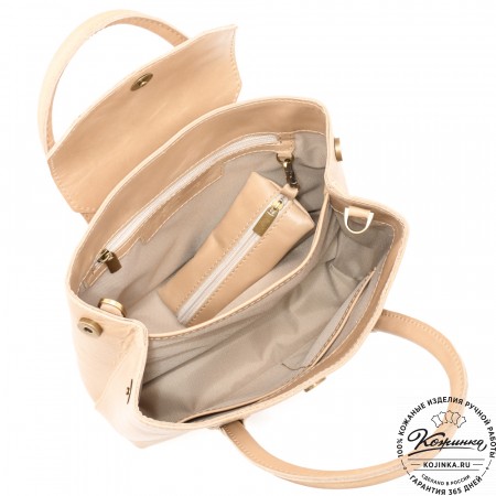 Сумка изготовлена из качественной натуральной кожи двух видов и прочной фурнитуры.