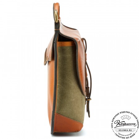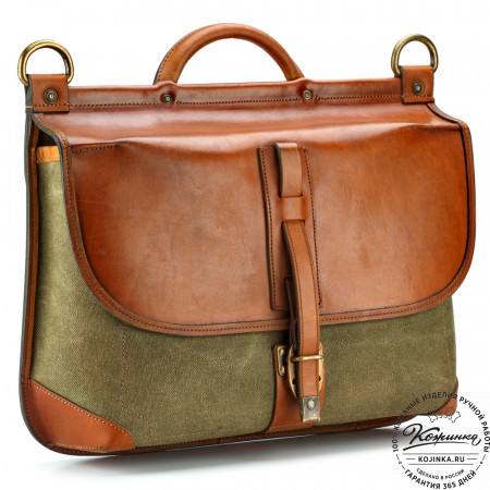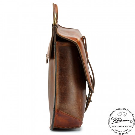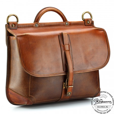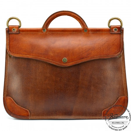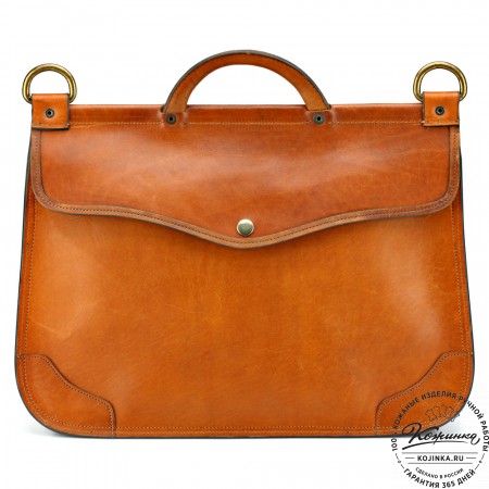 На модели представлен портфель "Джозеф" из кожи Антик рыжего цвета.