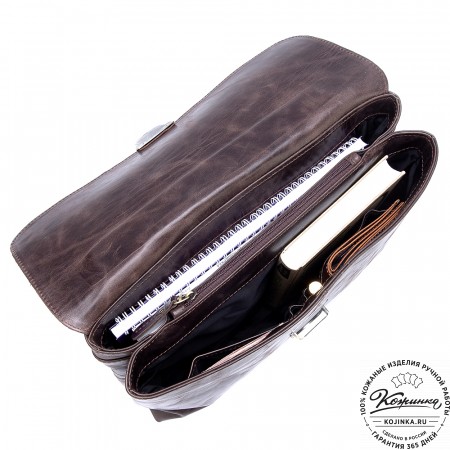 Кожаный портфель "Джозеф" (тёмно-коричневый) - вместительный портфель из качественной натуральной кожи.