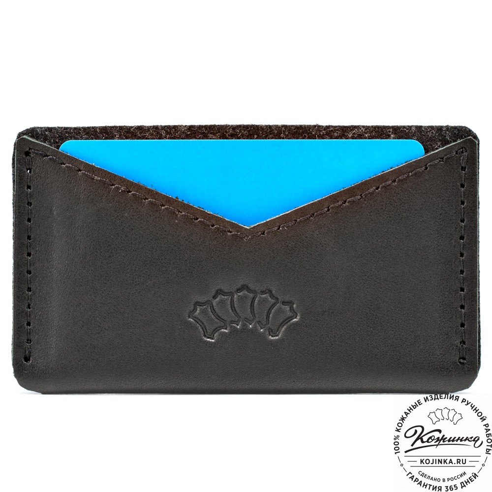Предназначен для хранения пластиковых карт или визиток. Имеет два кармашка, разделенные между собой перегородкой из войлока. В каждый карман помещается 5-8 карточек. Кроме того, в кардхолдер можно положить несколько купюр и взять с собой вместо кошелька или портмоне.