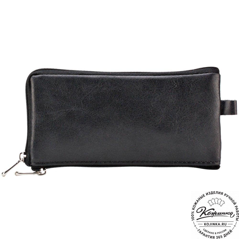 Кожаная ключница "Шанхай" (чёрная) – большая удобная ключница с дополнительным кармашком на молнии.