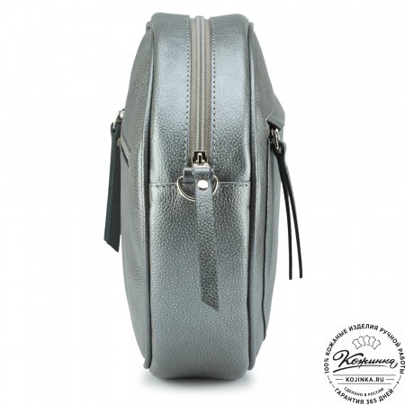 Сумочка изготовлена из толстой натуральной кожи, хорошо держит форму.