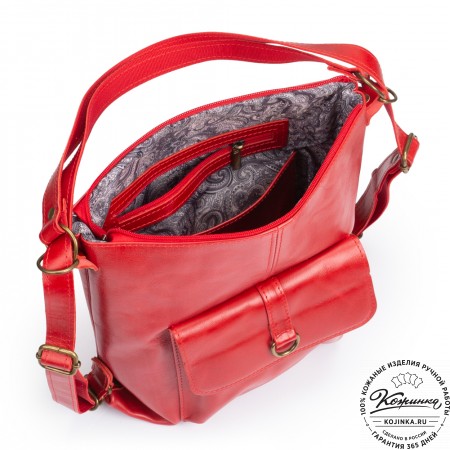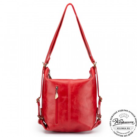 На модели представлен рюкзак-сумка "Греция" рыжего цвета.