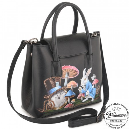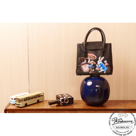 Женская кожаная сумка "Чешир за чаем" - эффектная сумочка из натуральной кожи с ручной росписью.