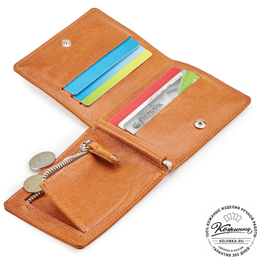 В этой модели есть не только зажим для хранения купюр, но и несколько отделений для карт, и кармашек на молнии для монет.